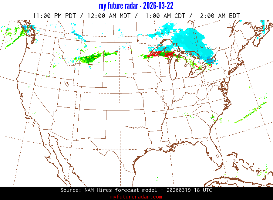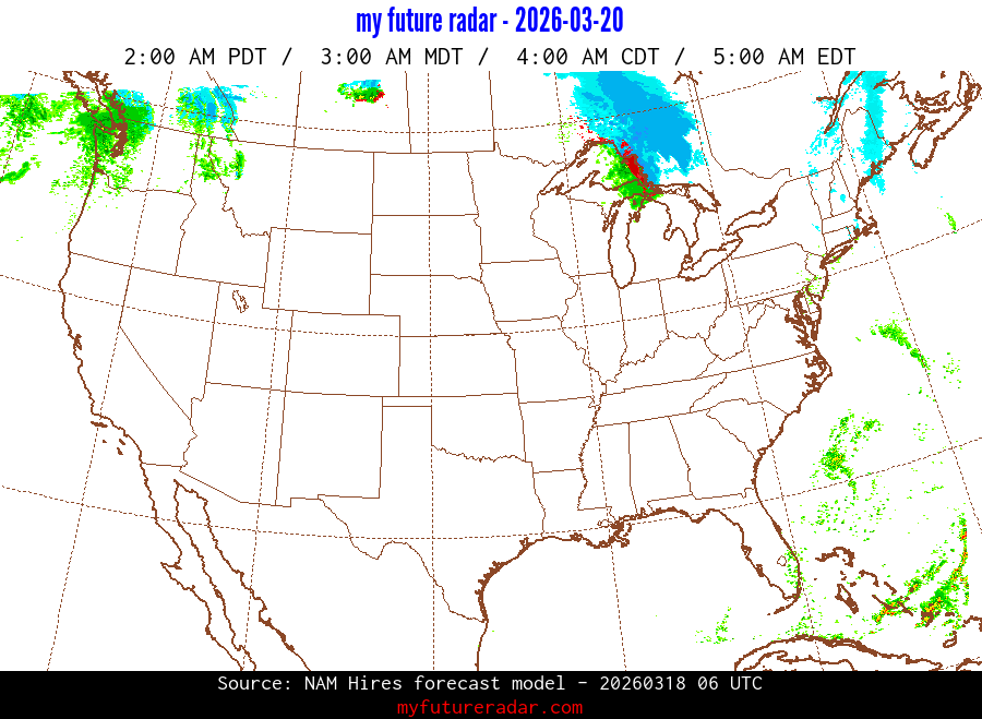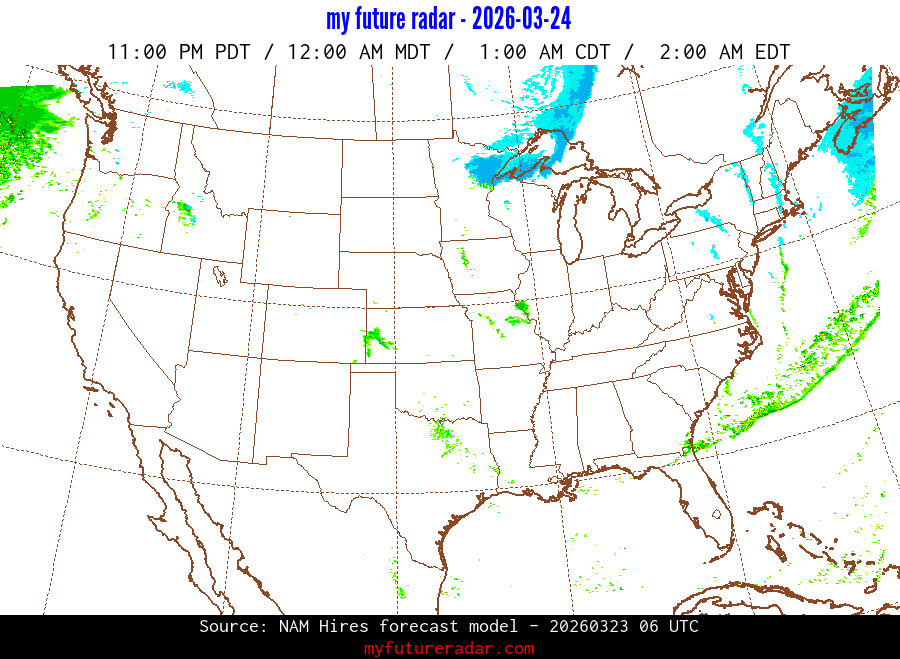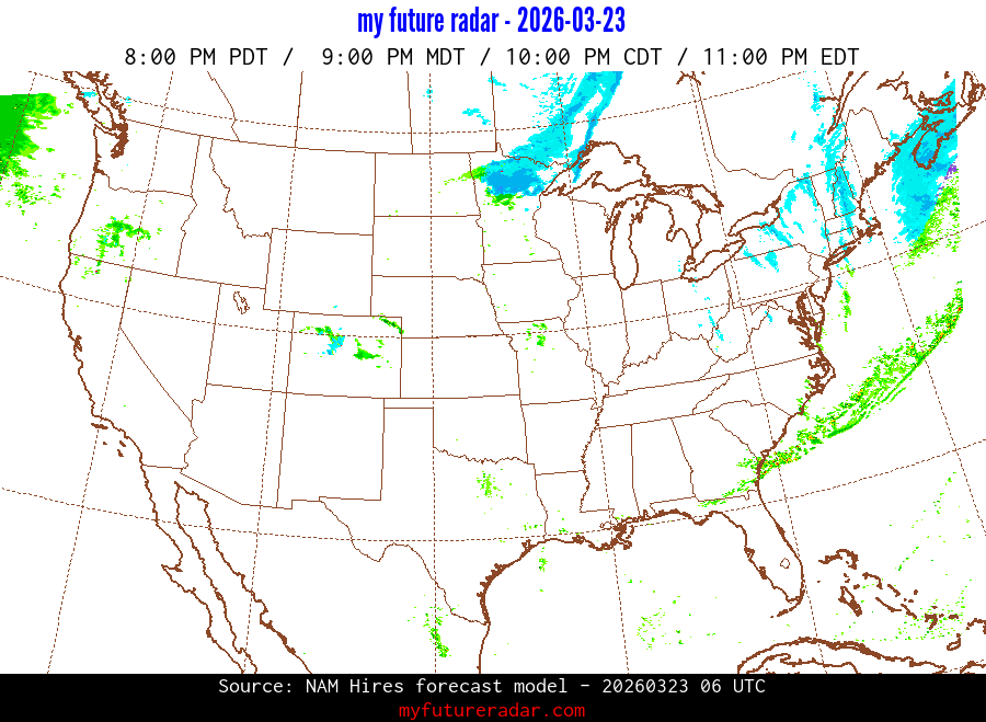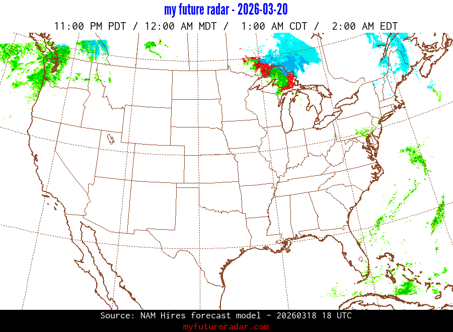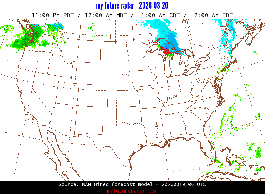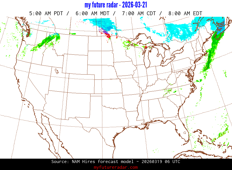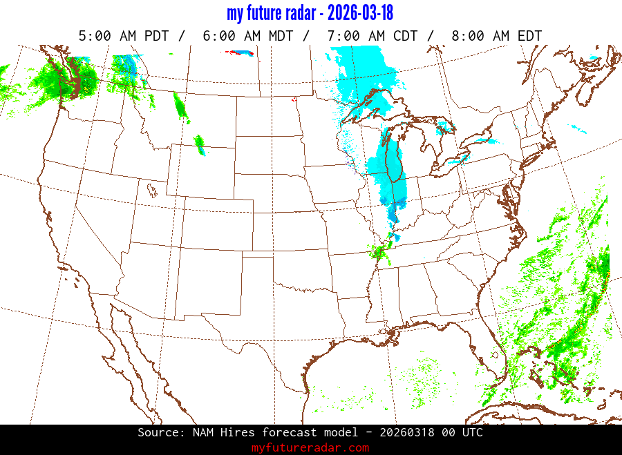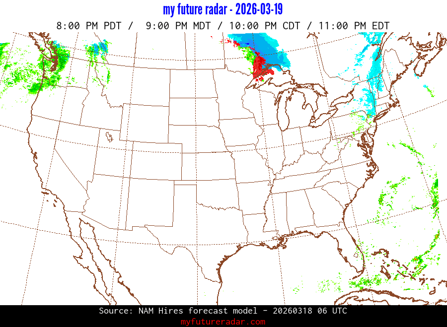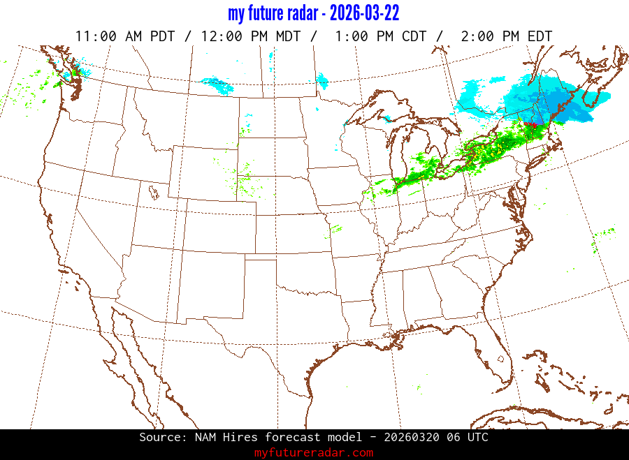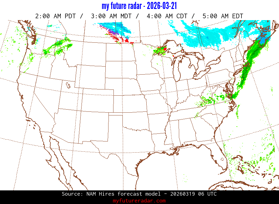 You are on the page that displays data from the NAM Hires forecast model. Currently, we have radar imagery for this model from now until .