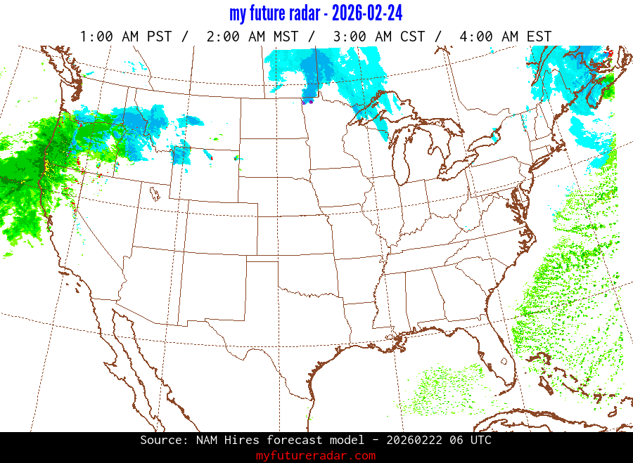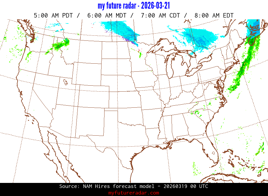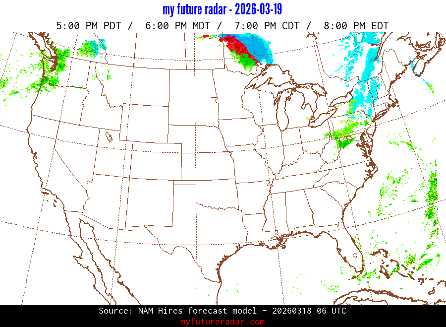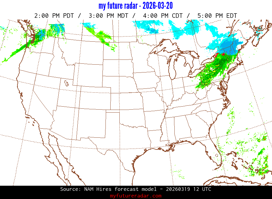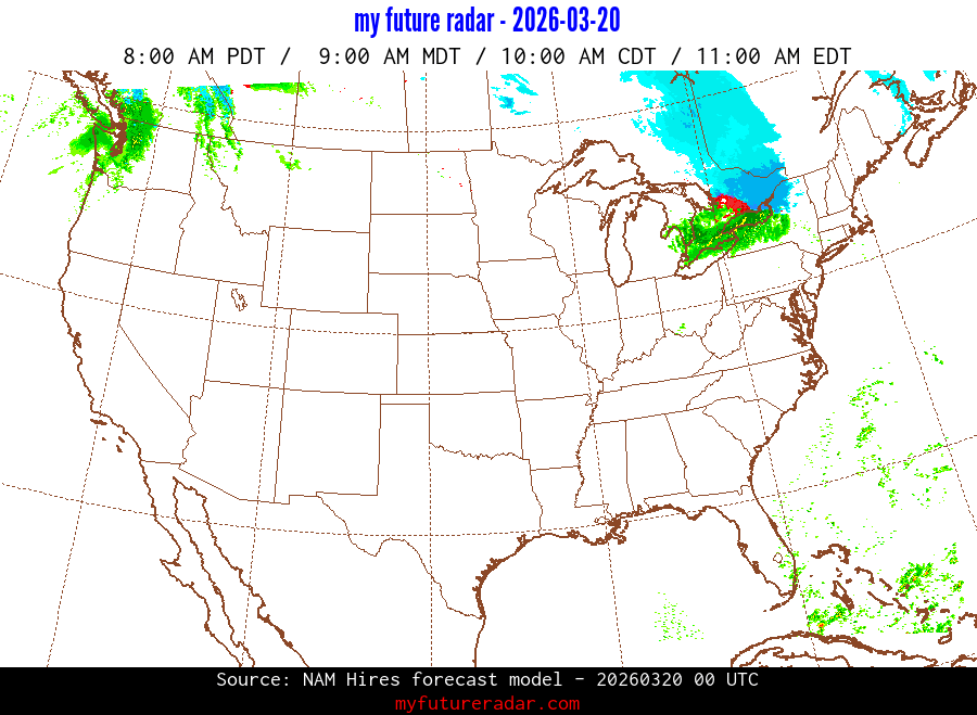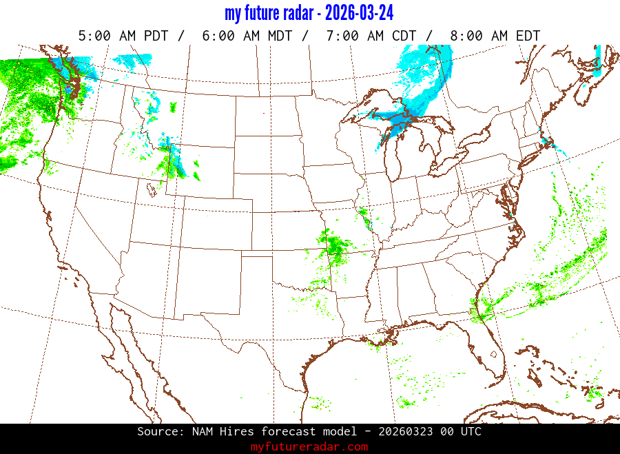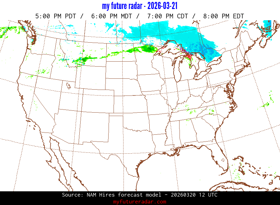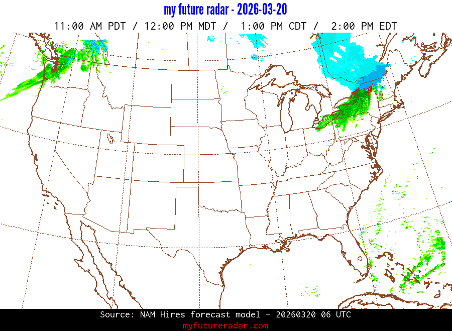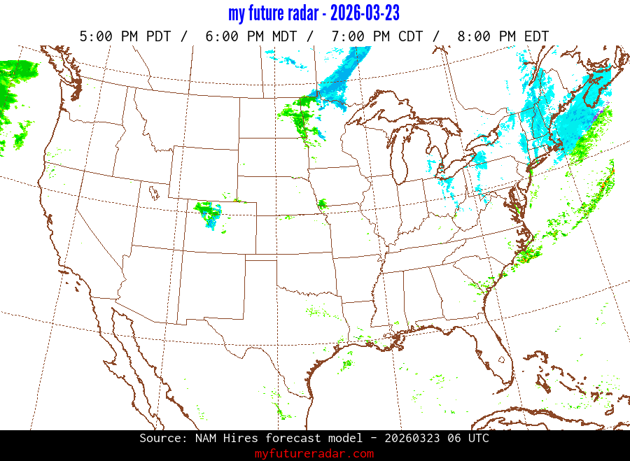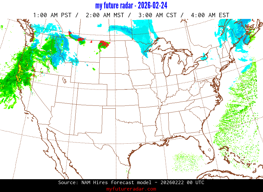 You are on the page that displays data from the NAM Hires forecast model. Currently, we have radar imagery for this model from now until .