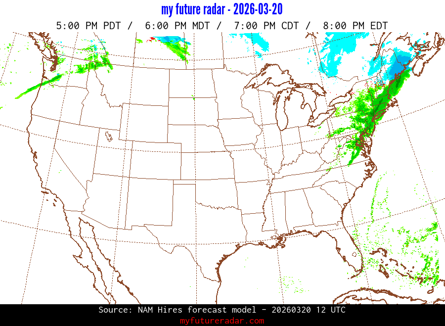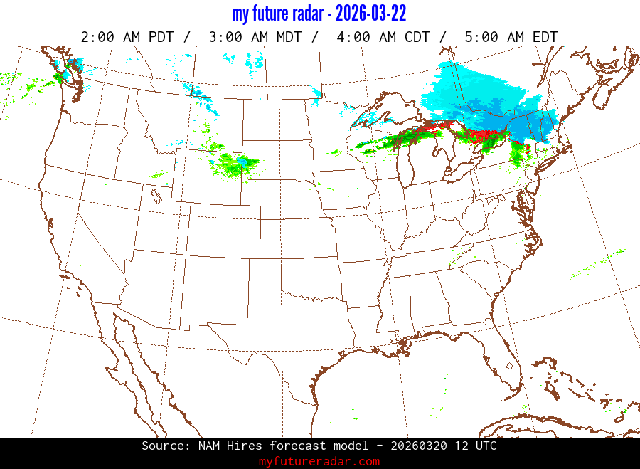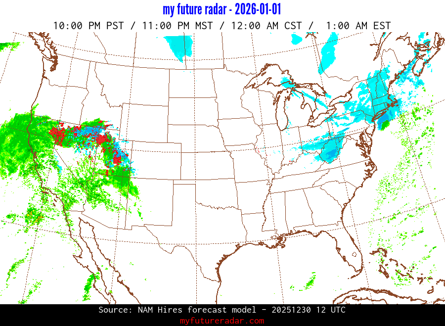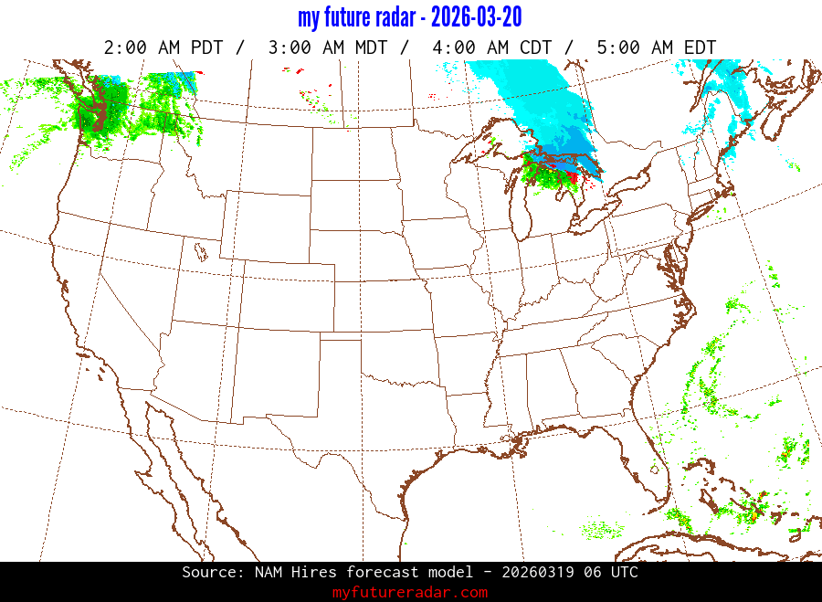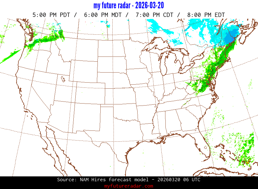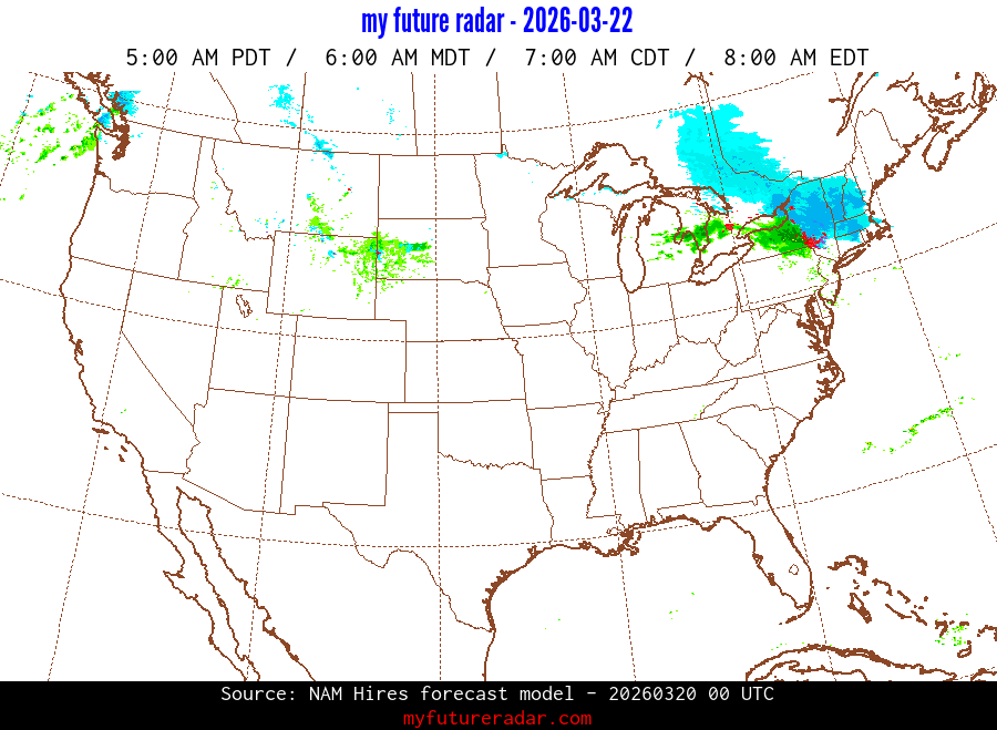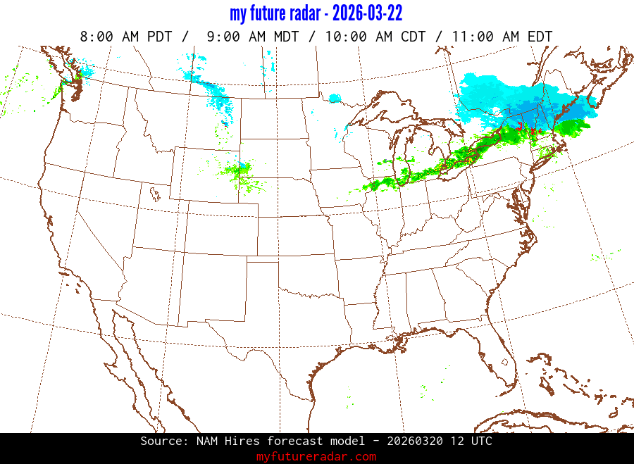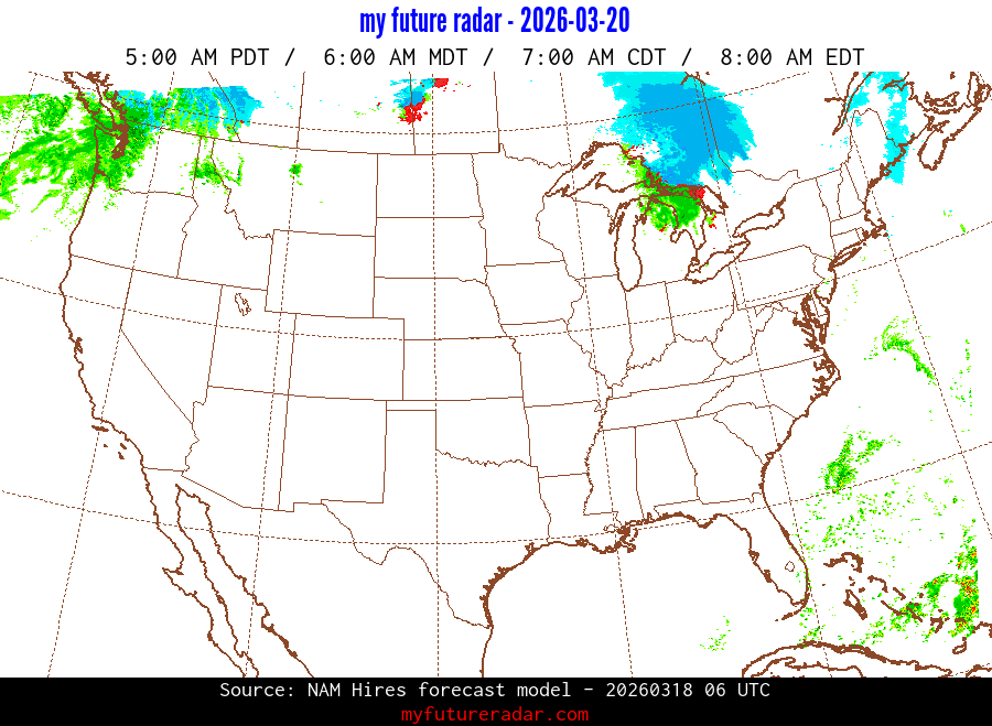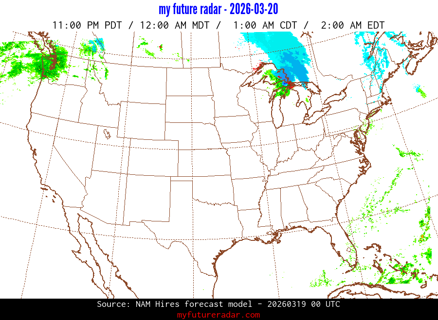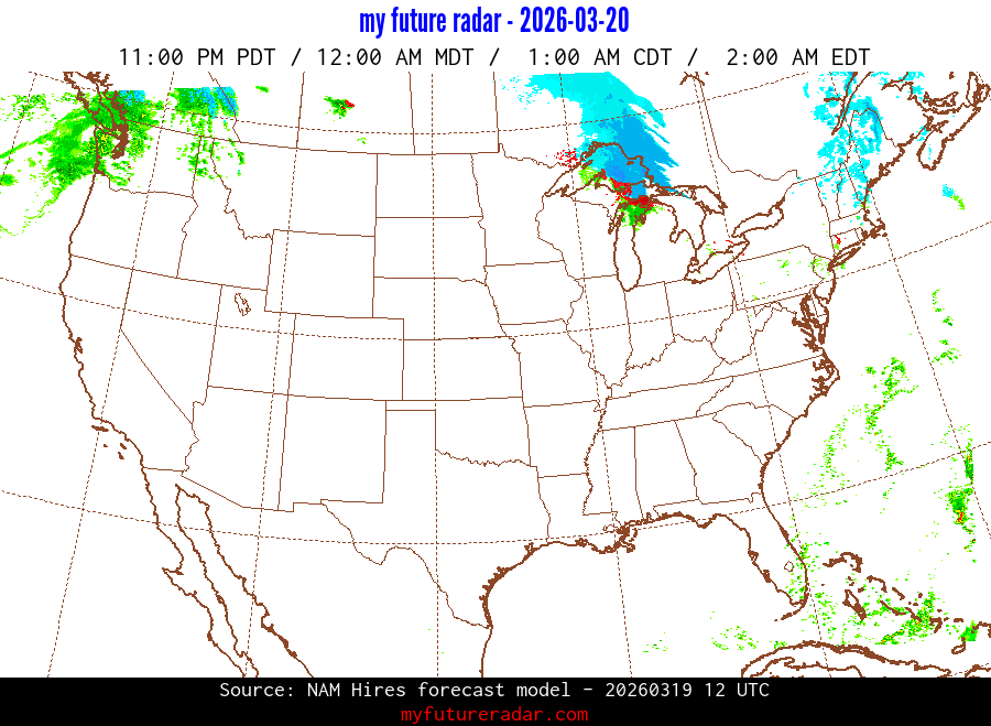 You are on the page that displays data from the NAM Hires forecast model. Currently, we have radar imagery for this model from now until .