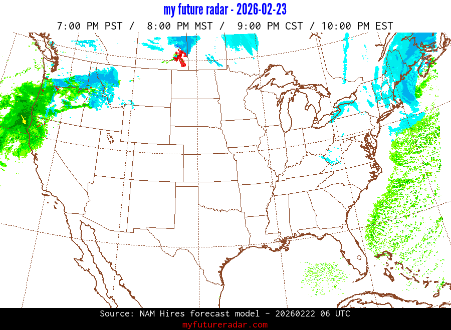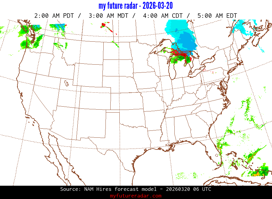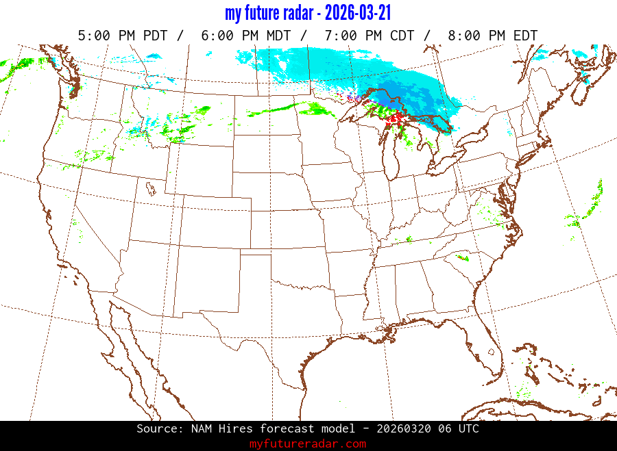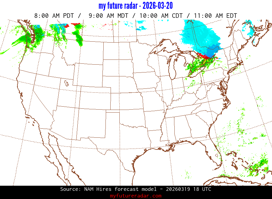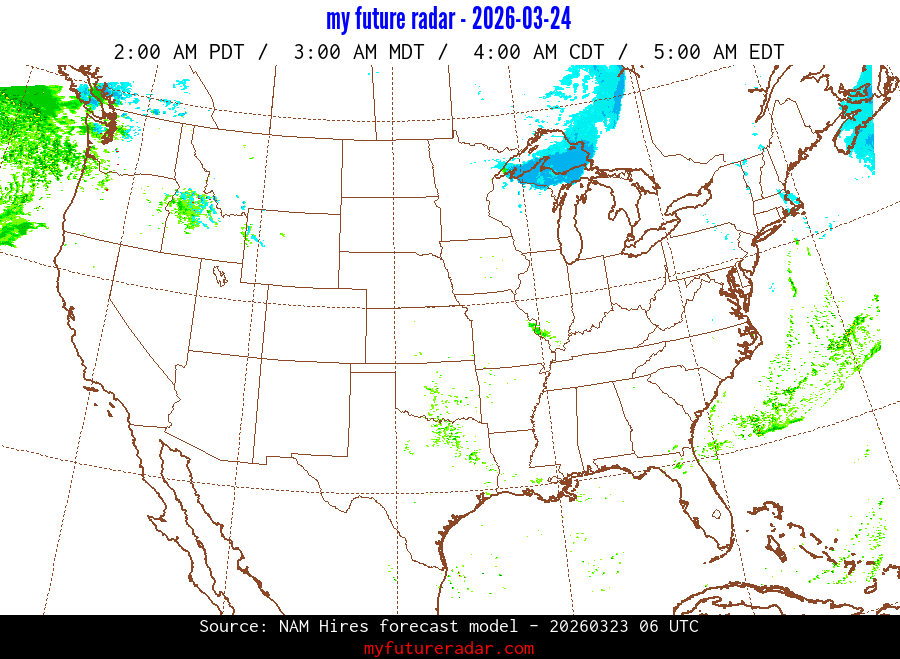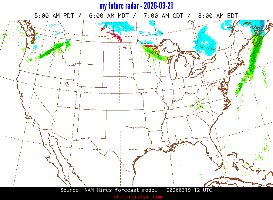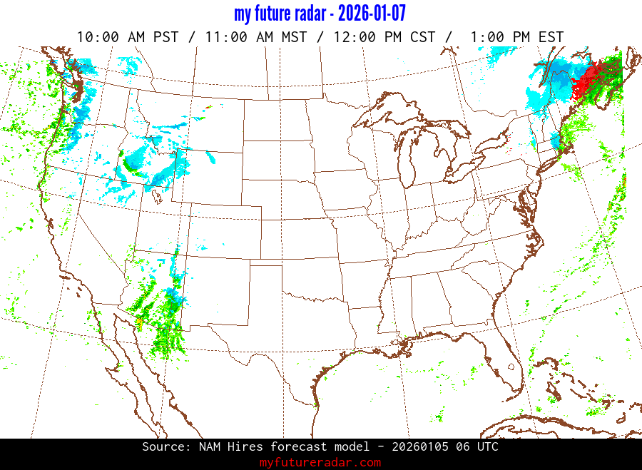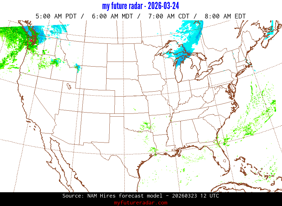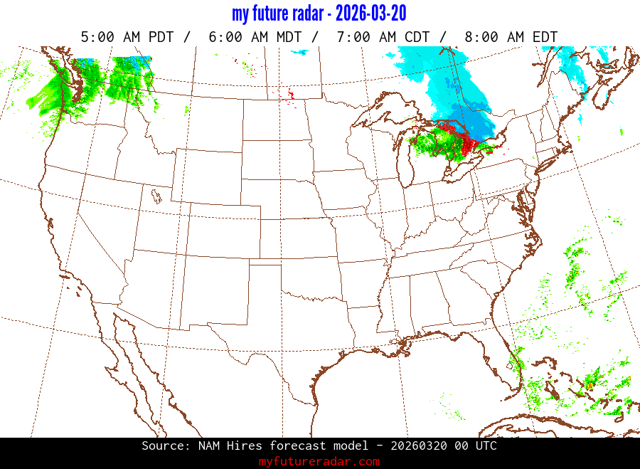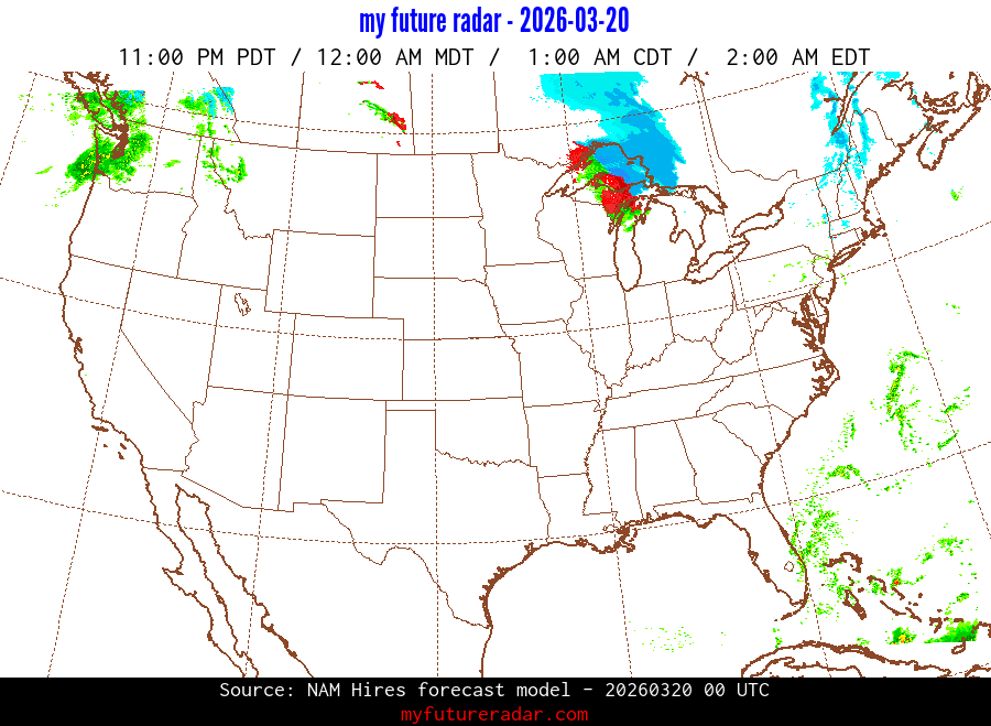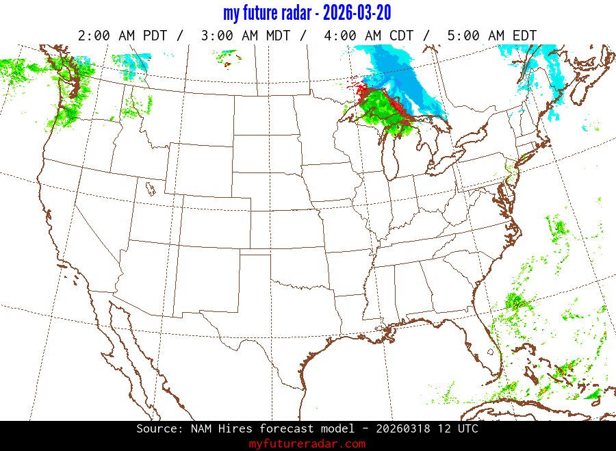 You are on the page that displays data from the NAM Hires forecast model. Currently, we have radar imagery for this model from now until .