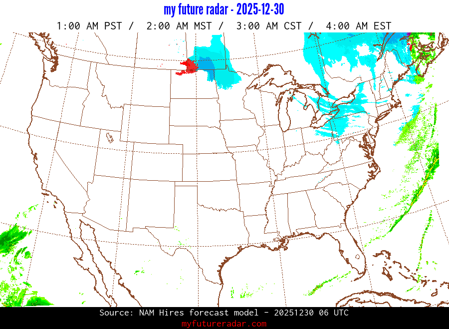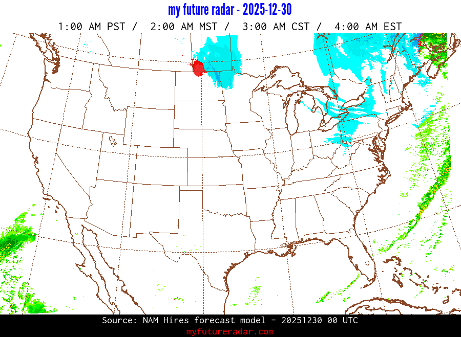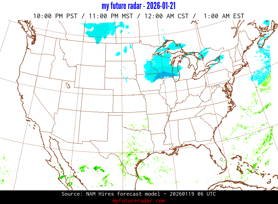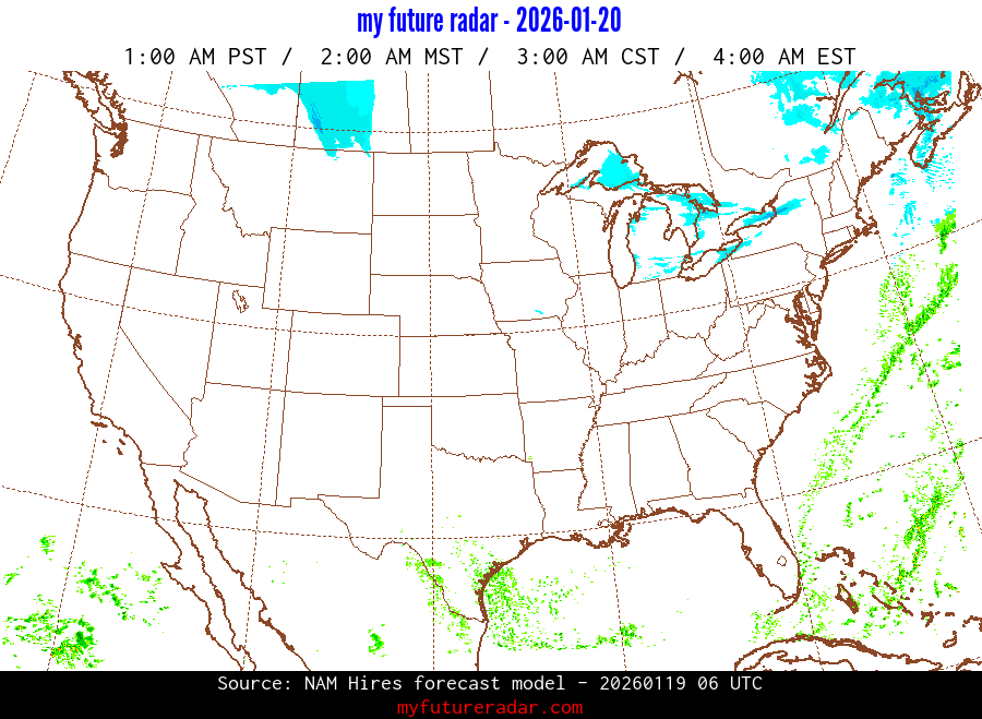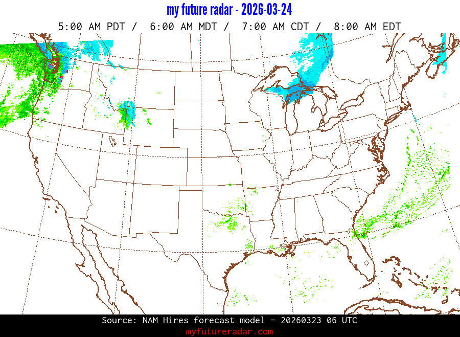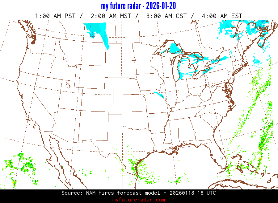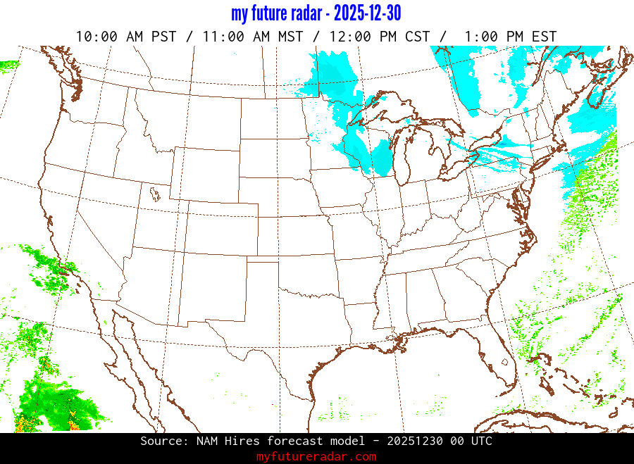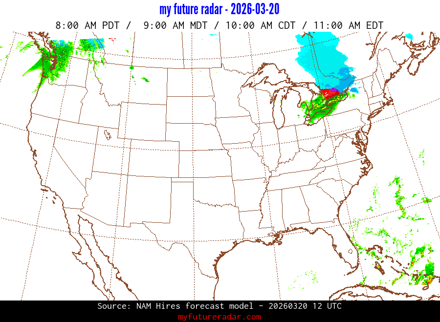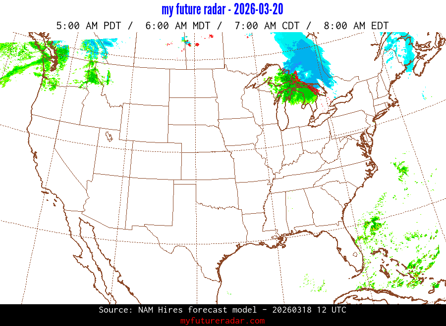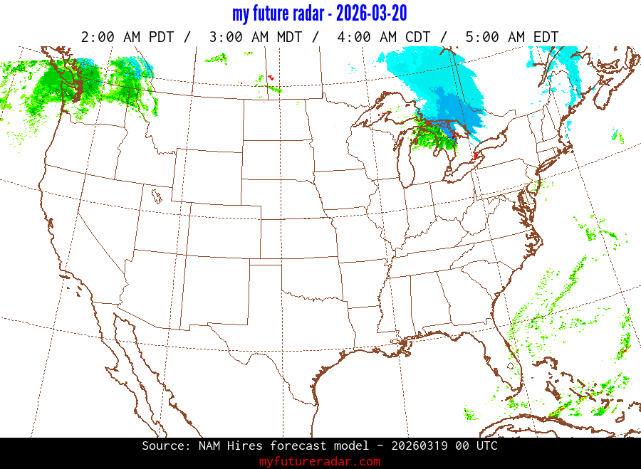 You are on the page that displays data from the NAM Hires forecast model. Currently, we have radar imagery for this model from now until .