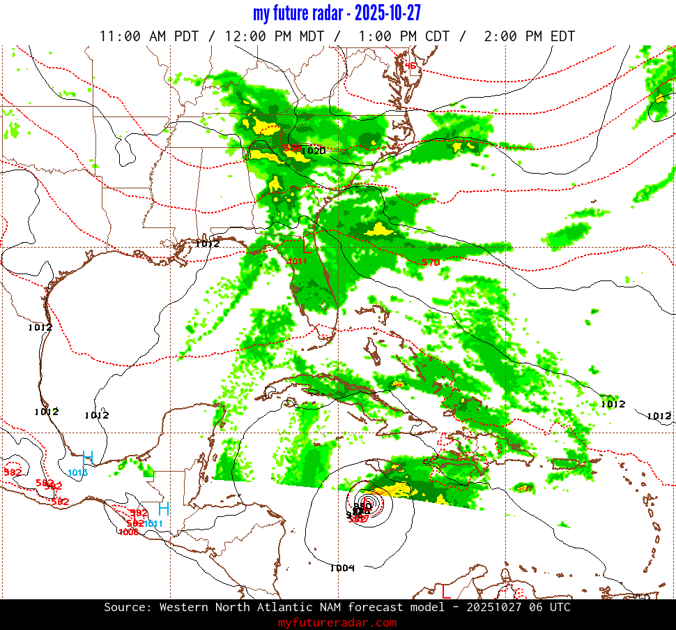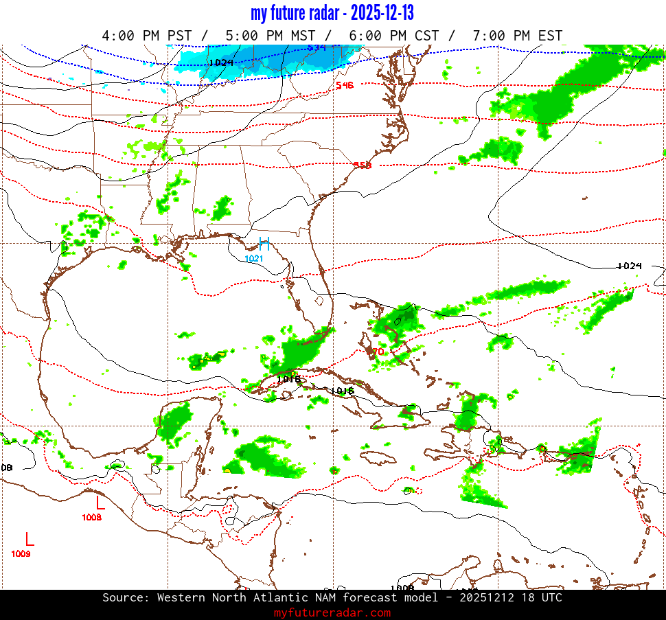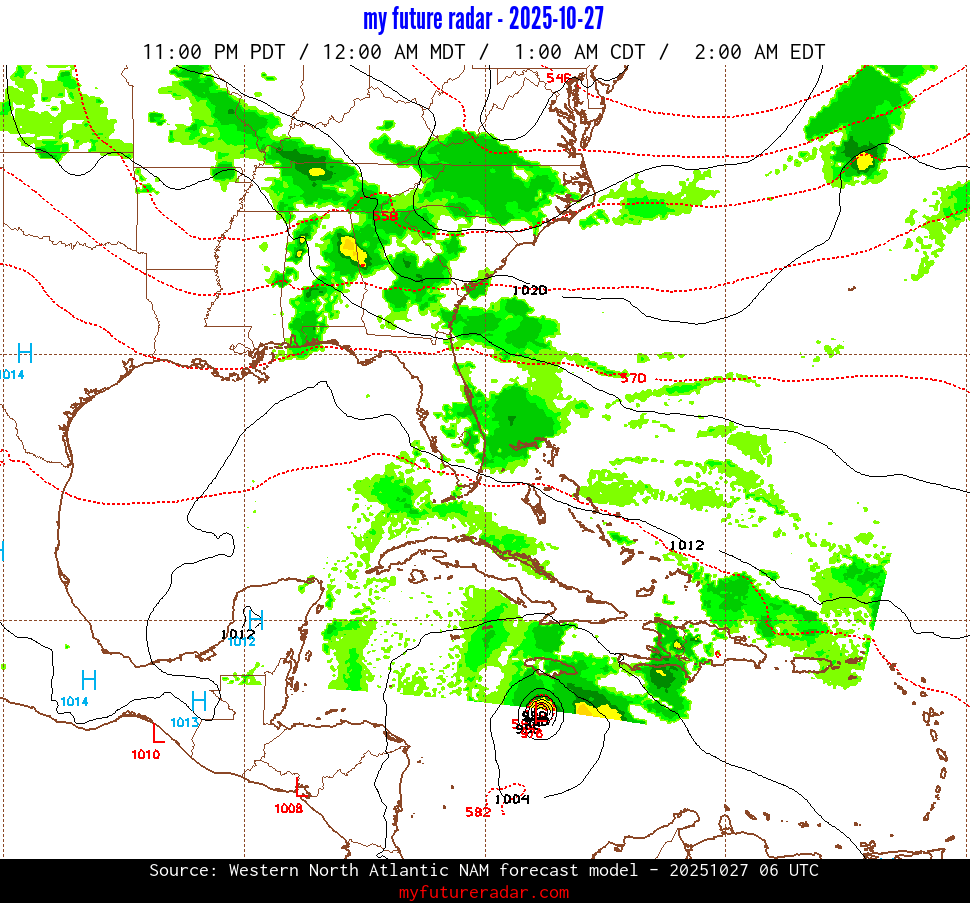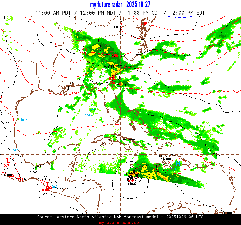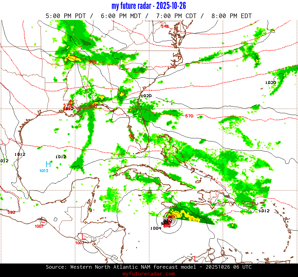 My Future Radar uses data from the Rapid Refresh and the NAM forecast models to provide simulated future radar imagery.
