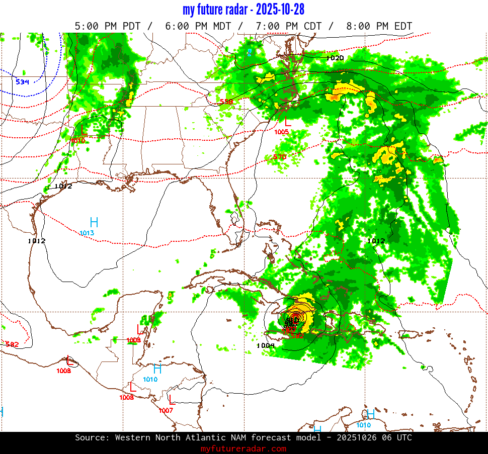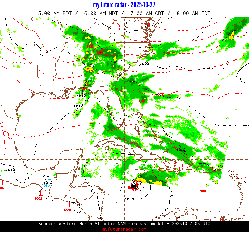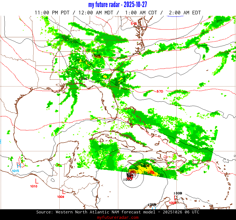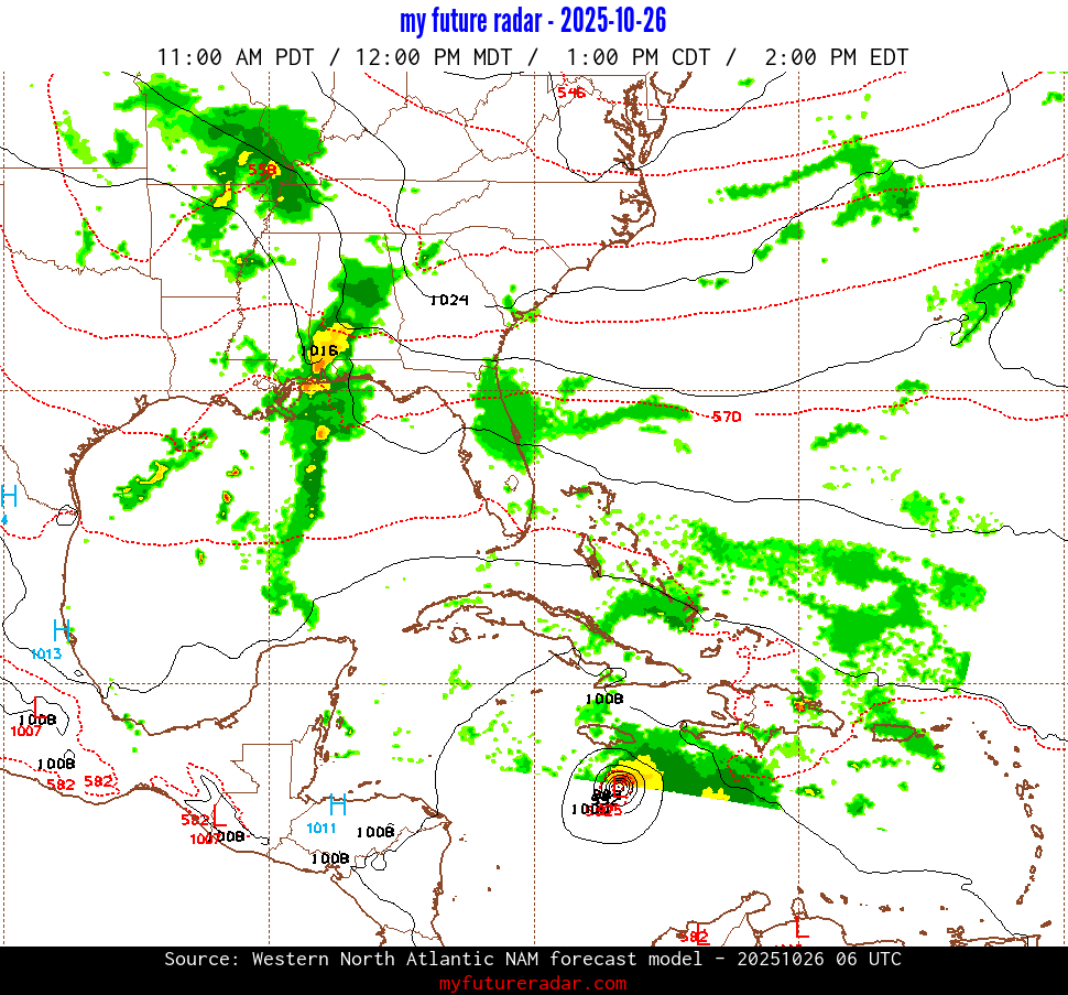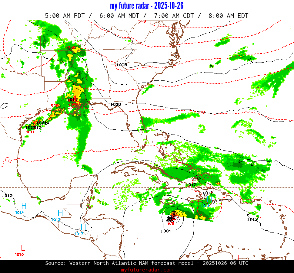 My Future Radar uses data from the Rapid Refresh and the NAM forecast models to provide simulated future radar imagery.