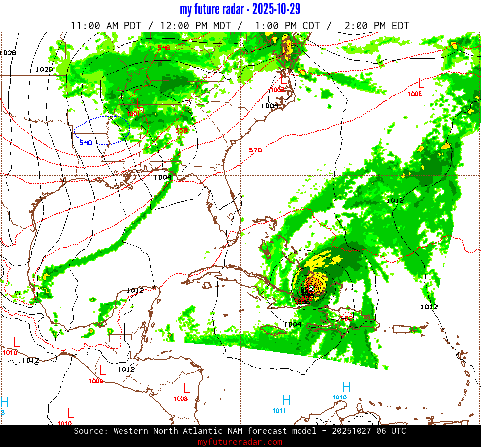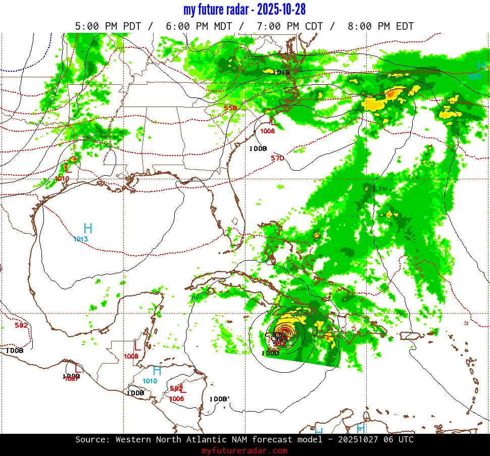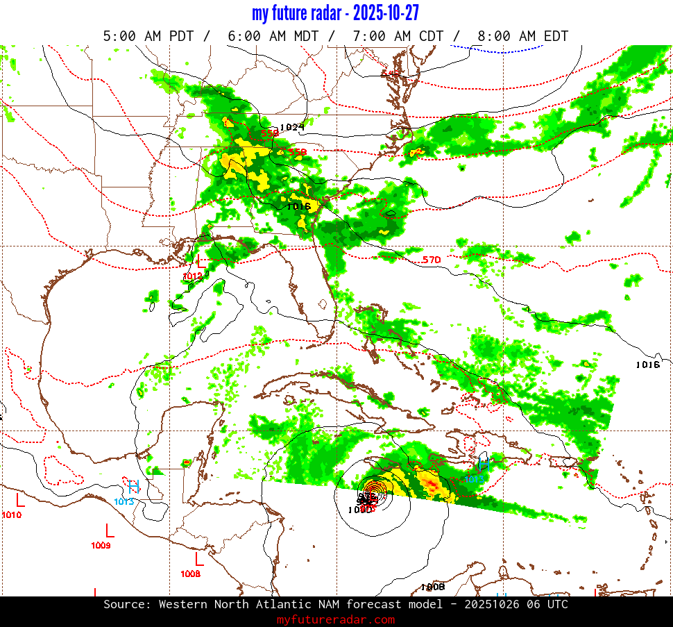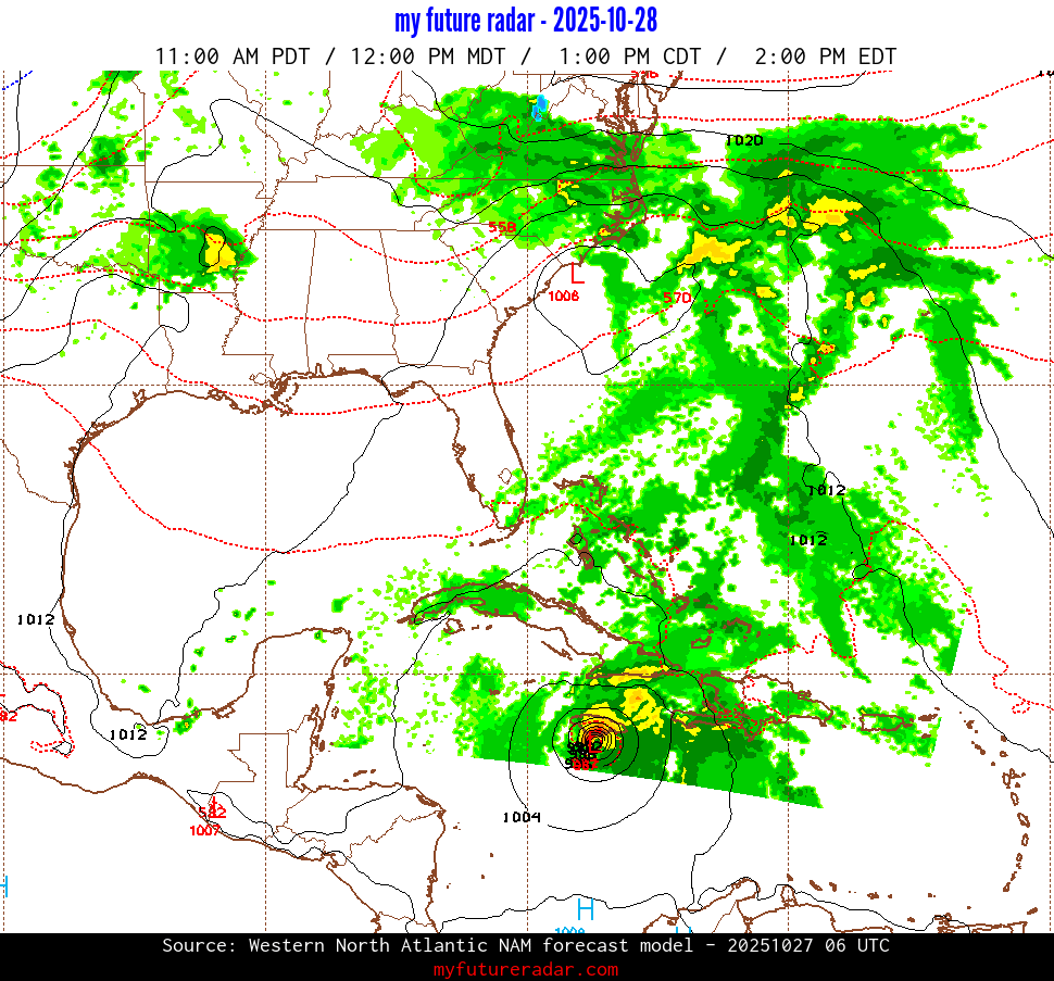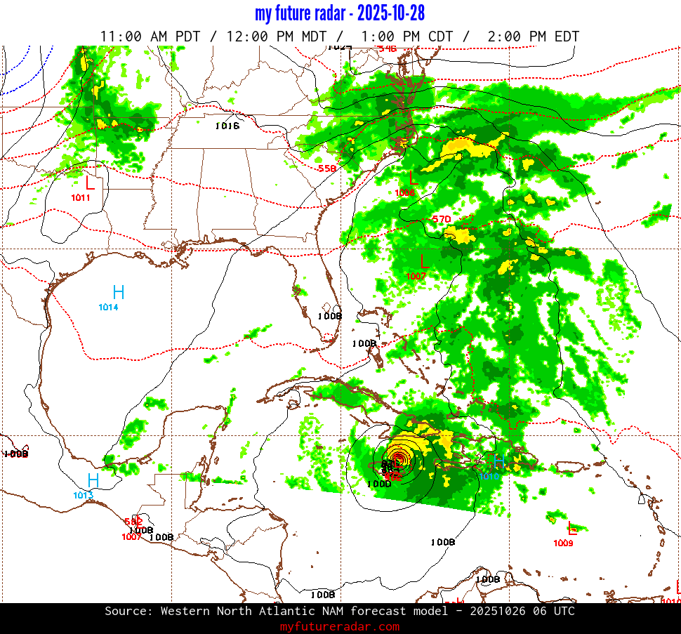 My Future Radar uses data from the Rapid Refresh and the NAM forecast models to provide simulated future radar imagery.